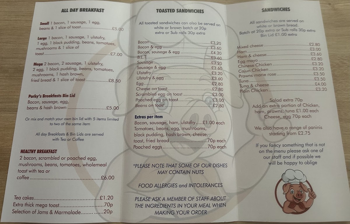 Porkys Pantry offers a straightforward café menu focused on casual, comforting bites and familiar drinks. This is the kind of place where you can settle in for a satisfying start to your day or drop by for a light lunch that feels like a quiet pause in a busy day. Menu highlights include the generous Mega Breakfast, fresh sandwiches like ham and cheese or tuna and cheese, as well as daily specials such as homemade soup.